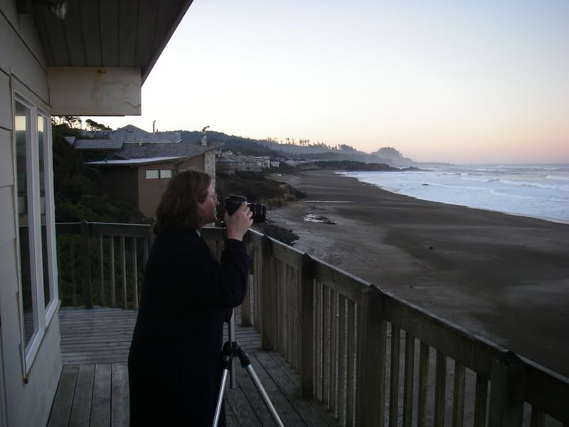 Dana getting some photos from the back deck or balcony of the house