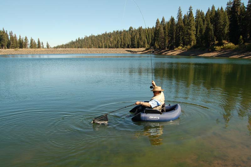 Nice fishing, eh. Joe is a terrific guy as well as an excellent guide. He treats those fish as if they were his kids. Water still looks down from the springtime. Is Trent's pram still tied up near the ramp?- cheap storage I suppose. We were there with the Tracy Fly Fishers last June when the thunder bumpers started all those fires in the Sierra. Joe, at the time, was suggesting anything resembling Alder flies and even gave us a black Sharpie to alter our caddis patterns in order to match the hatch. A couple of us walked the shoreline and fished cripples and dries to cruisers around the weed beds. Excellent fishing and amazingly healthy fish. Which reminds me, I have to get a bigger net before going back.