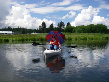 Dana just getting into her Kayak on Baum Lake
